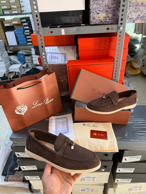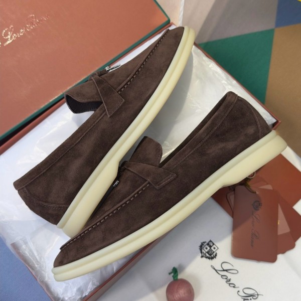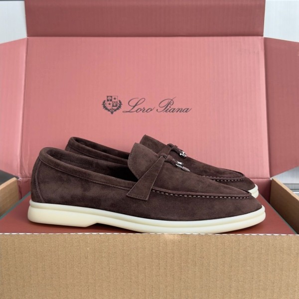 Loro Piana Summer Walk Charm Suede Loafers Brown